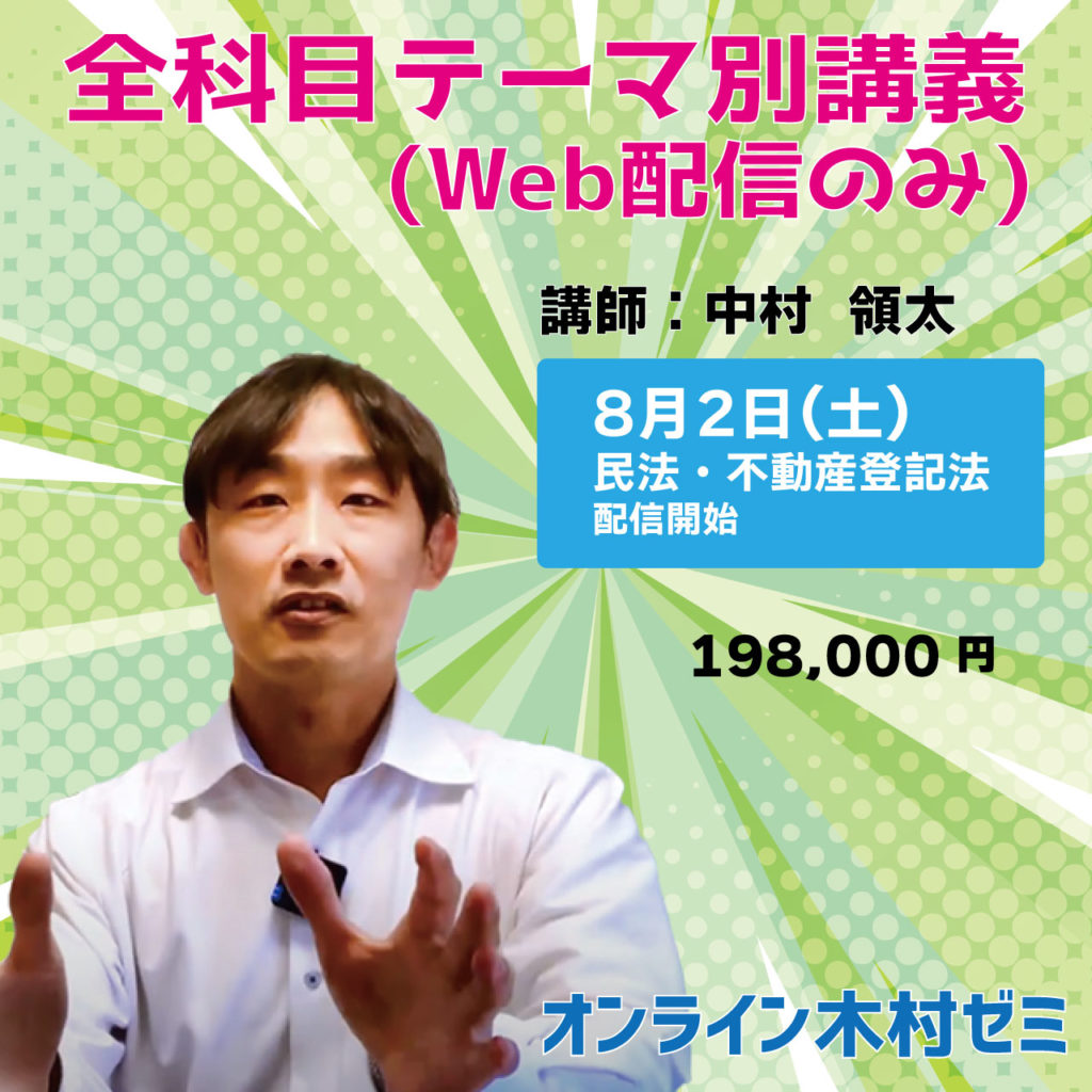 8月2日(土)民法・不動産登記法 配信開始
